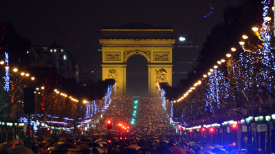 A minuit , des millions de gens dans le monde font sauter les bouchons de champagne, les Français claquant la bise sous le gui